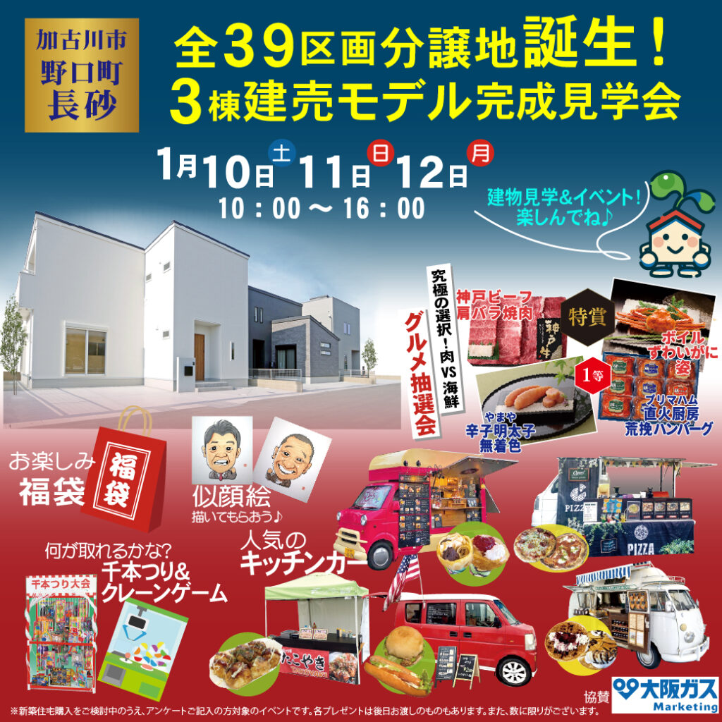 加古川市野口町長砂にて3棟建売モデル完成見学会&おたのしみイベントを開催♪