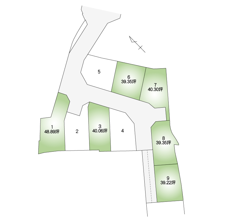 - ●地目/宅地 ●道路/幅員6.0m ●舗装/完 ●私道負担/有(9号地)