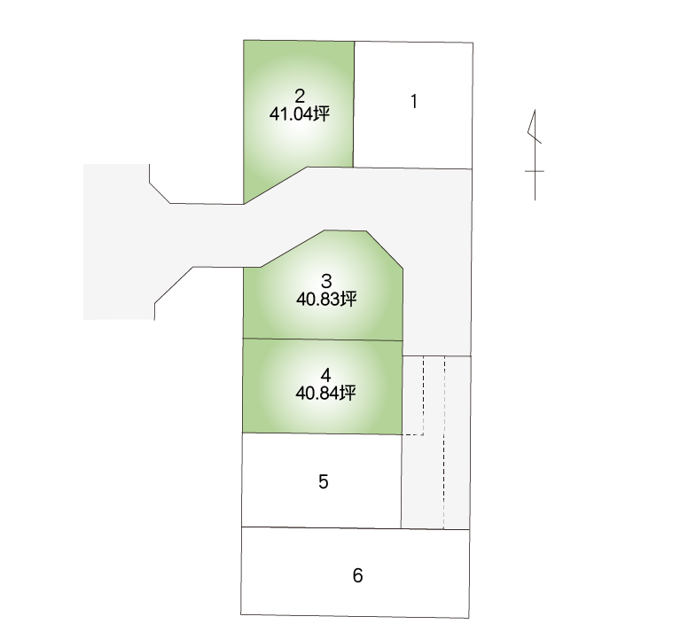 - ●地目/宅地 ●道路/幅員6.0m ●舗装/未 ●私道負担/有(4・5・6号地)