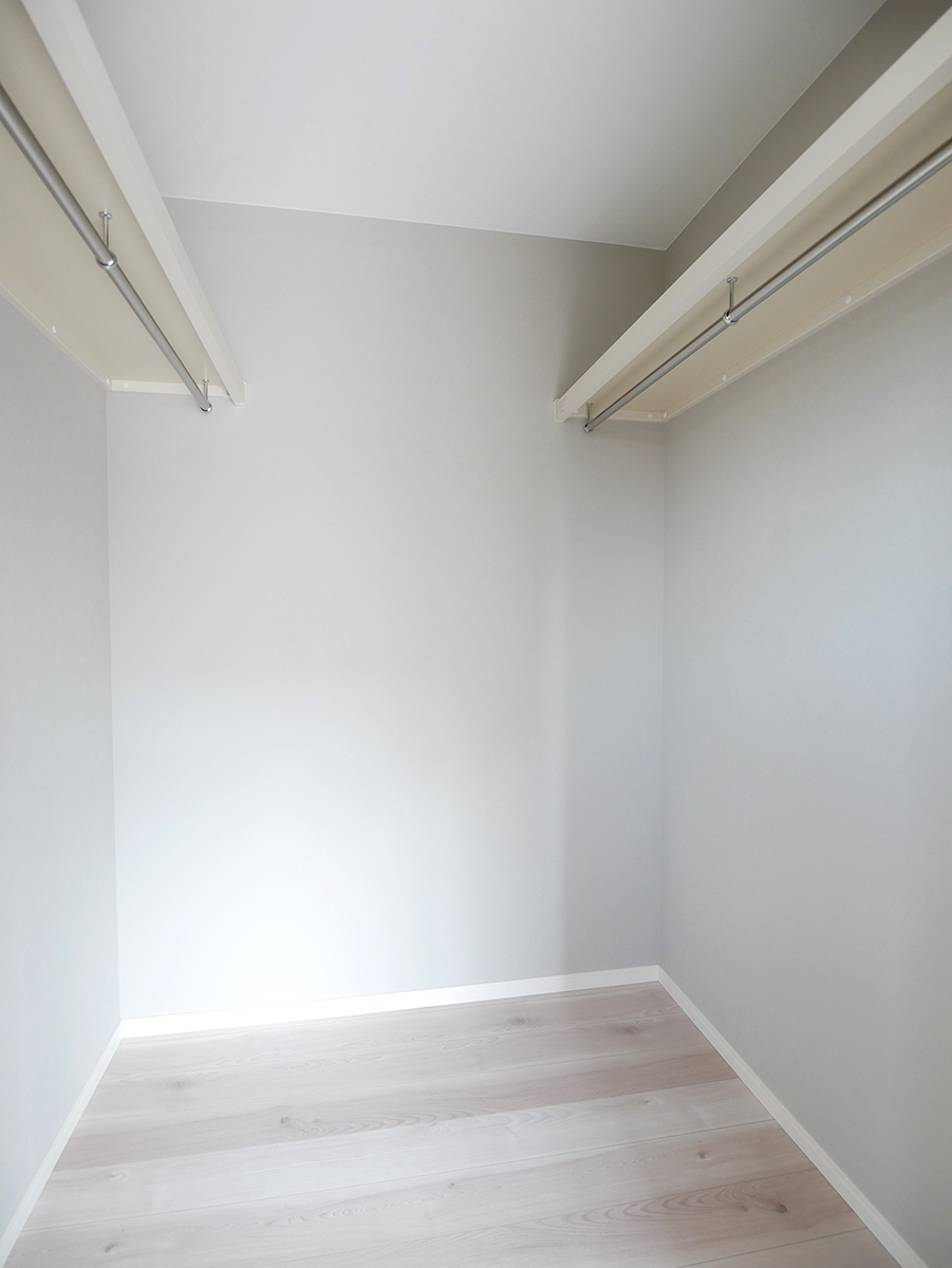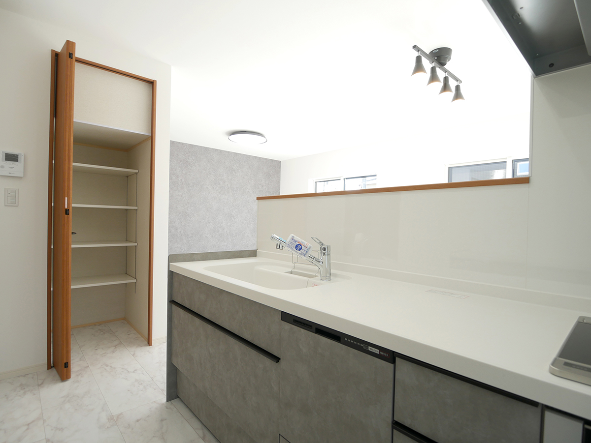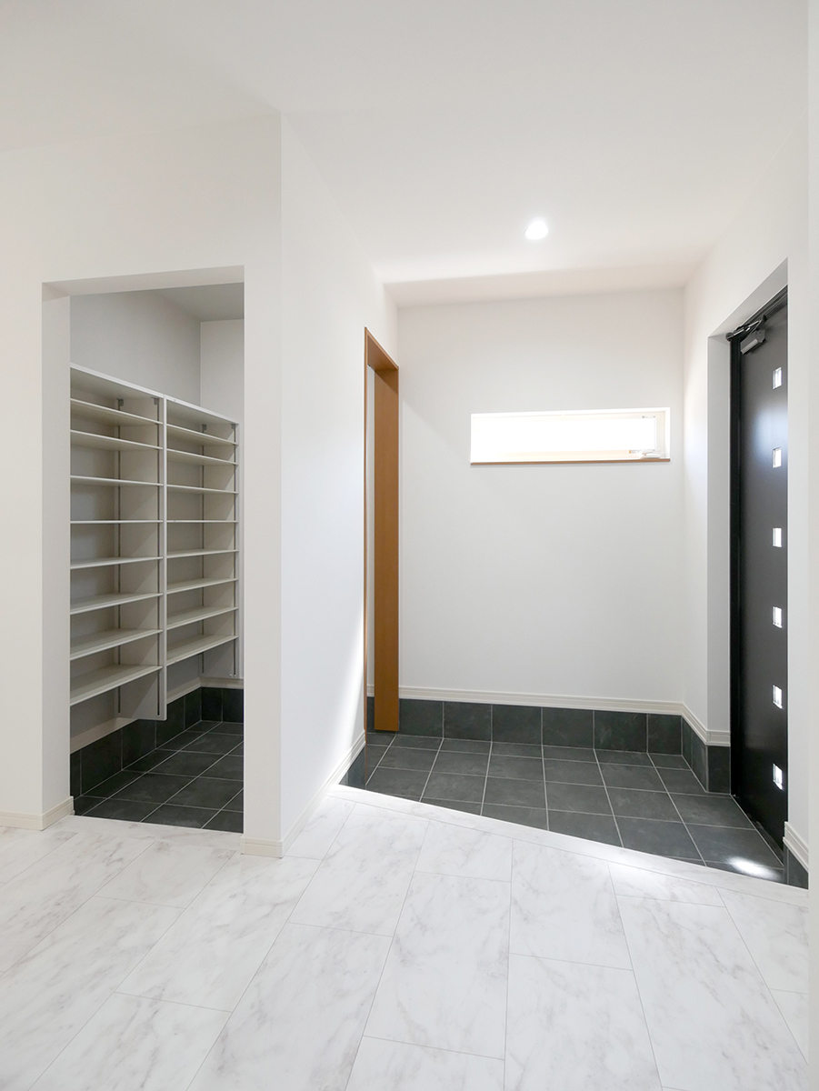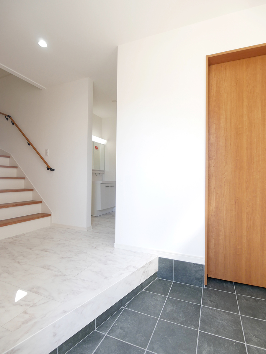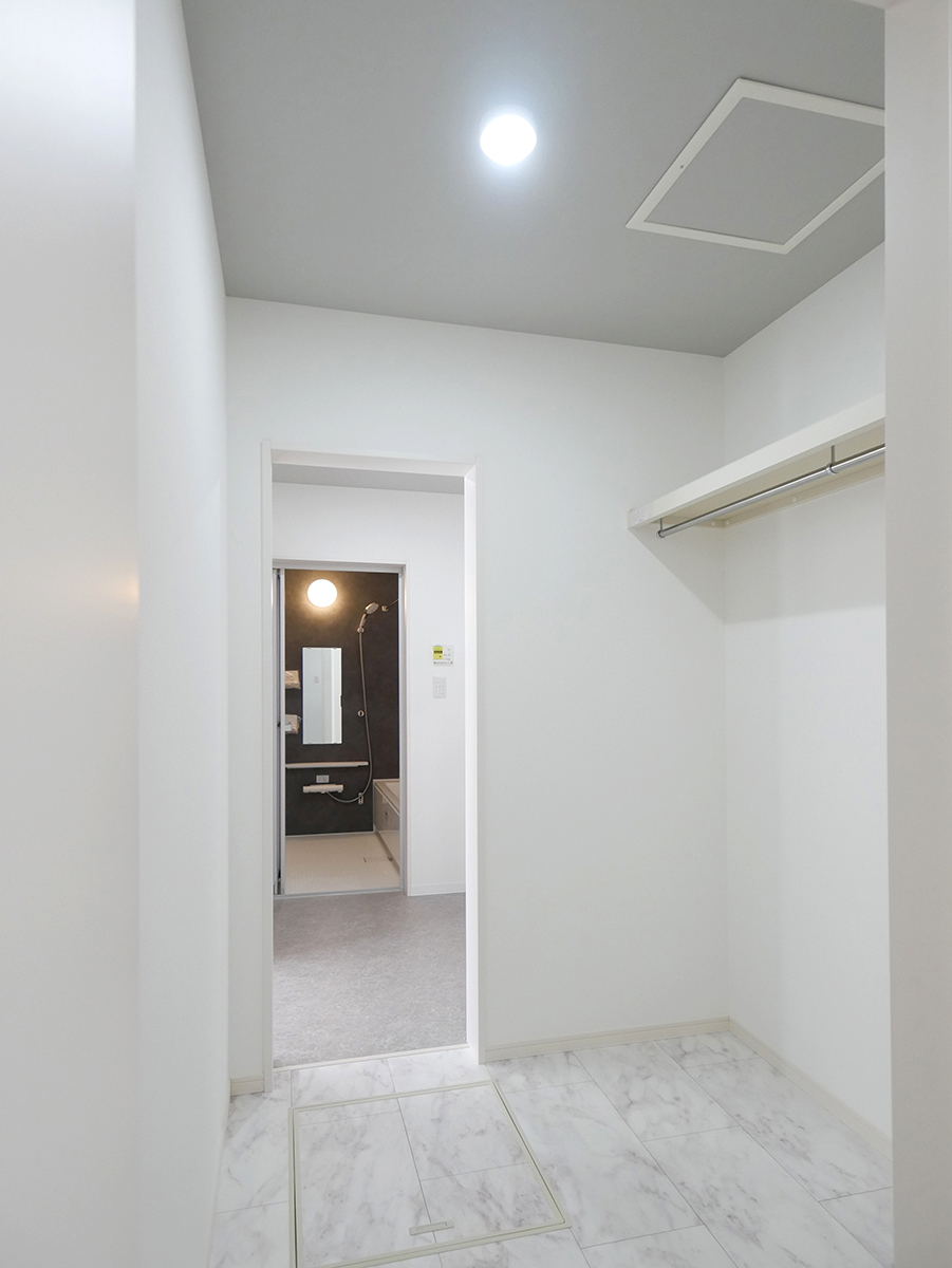 水廻りをまとめて配置し、1階全体を回遊できる家事ラクな間取りと、脱衣室から洗面室へつながる動線上に設けたファミリークローゼットで、身支度からお出かけまで、家族の生活動線もスムーズです!2wayのシューズクローゼットやウォークインクローゼット、適量適所に設けた収納が嬉しい住まいです!