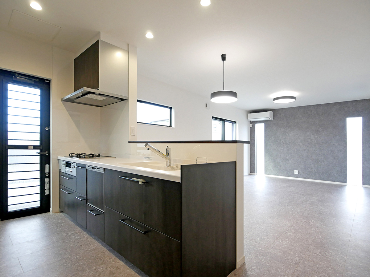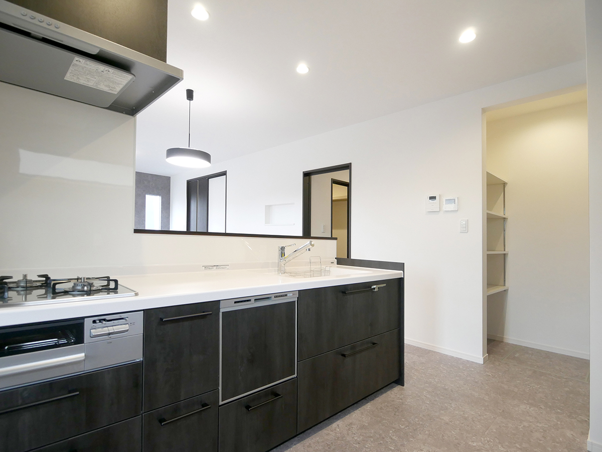 水廻りをまとめた家事ラクな配置と、家族が集いやすいLDK。対面キッチンで家事をしながらも家族との会話も弾みます!