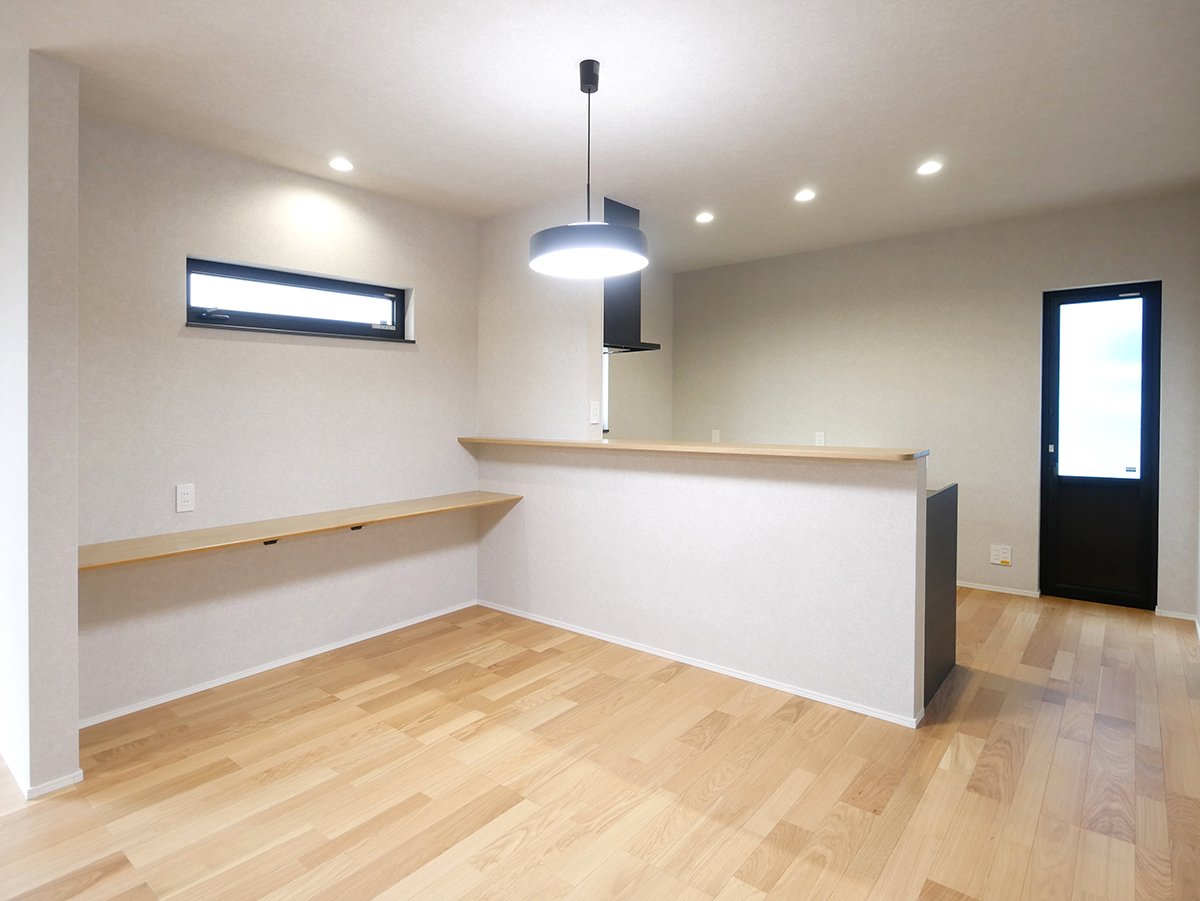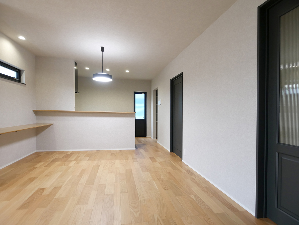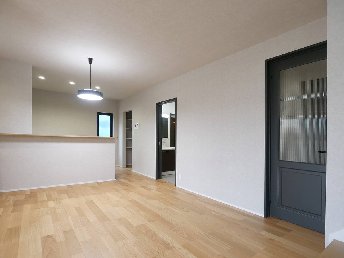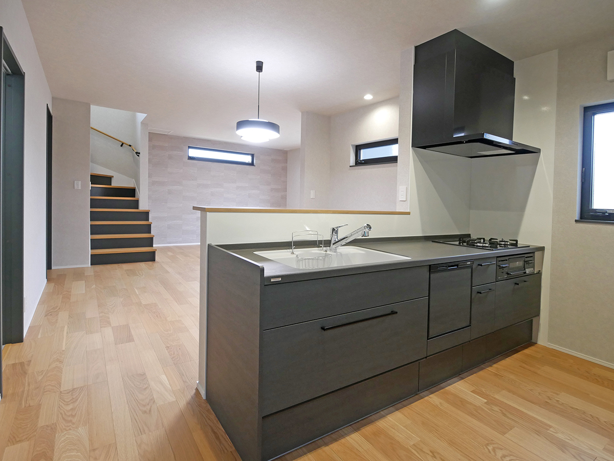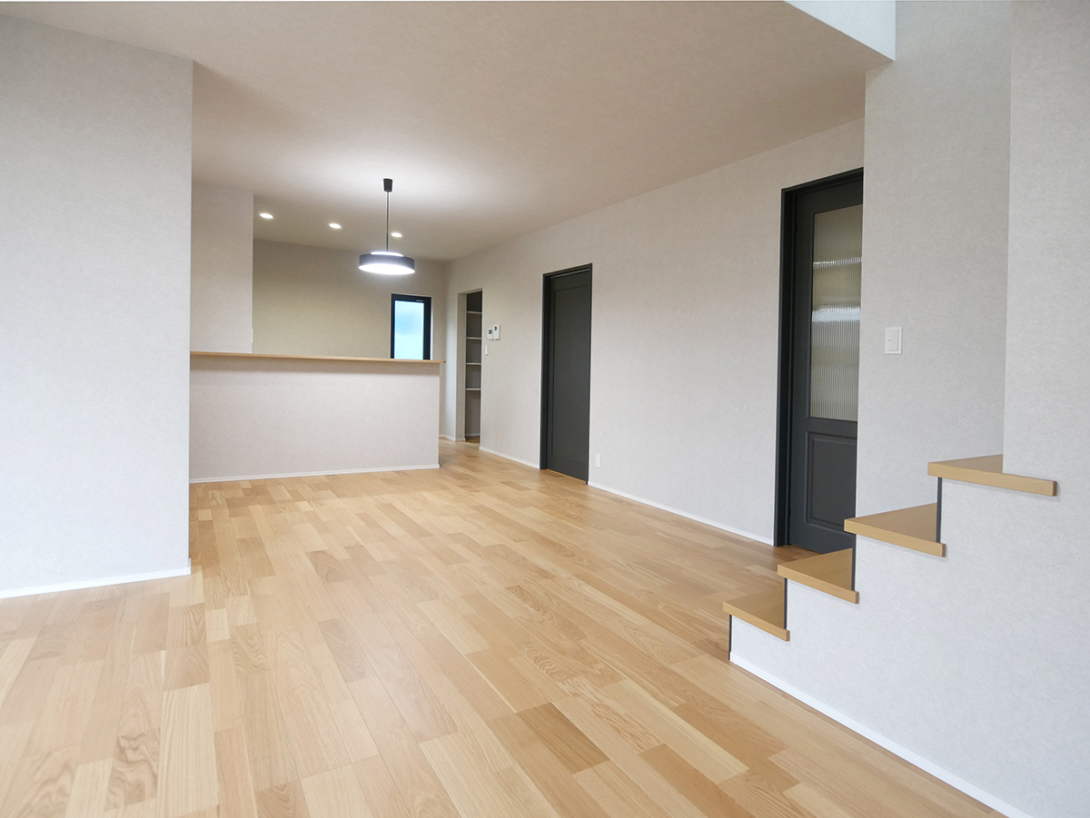 家族が集いやすい広々19.5帖のLDKは、水廻りをまとめた家事ラク&家族に目が届く配置と、コミュニケーションがとりやすいリビング階段♪