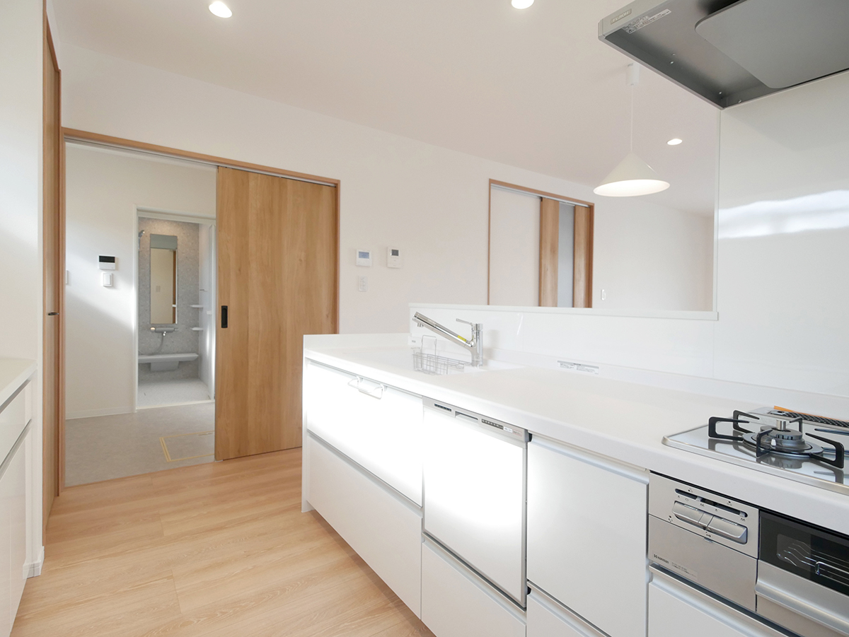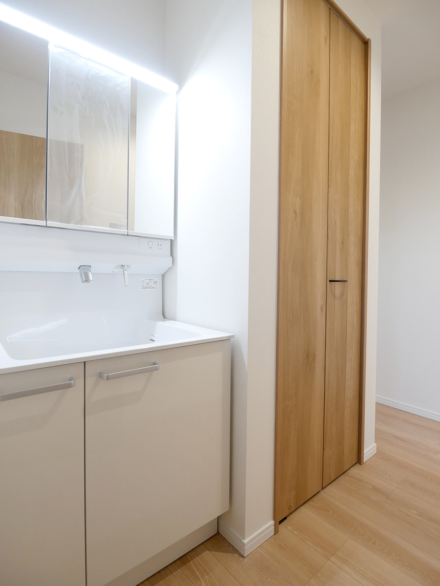 水廻りをまとめ、キッチンから2way脱衣室を介して1階全体を回遊できる家事ラクな間取りです!