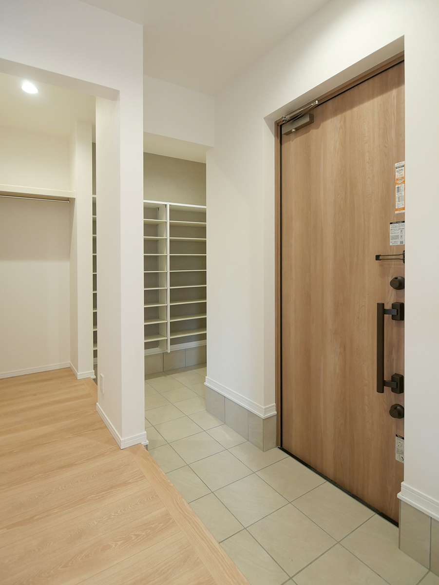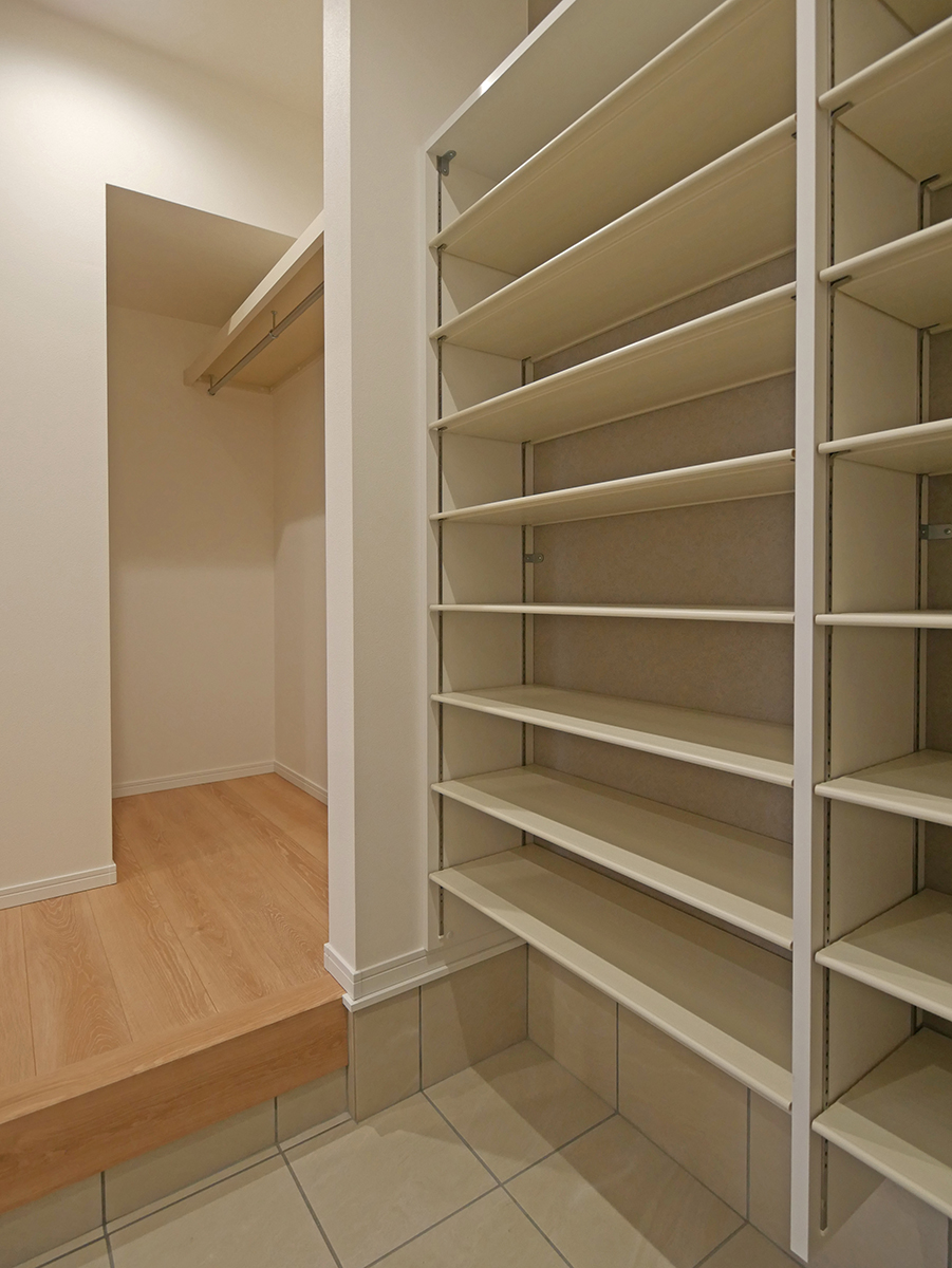 シューズクローゼット横にファミリークローゼットを設け外出時の身支度もスムーズ♪