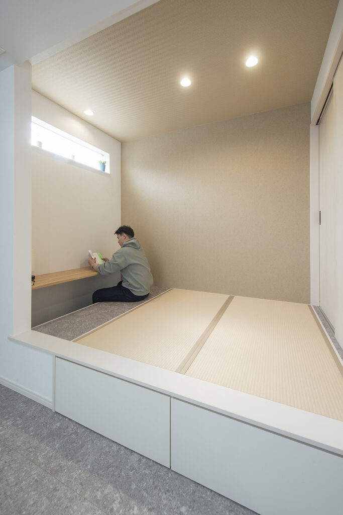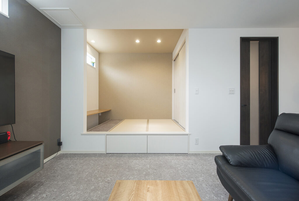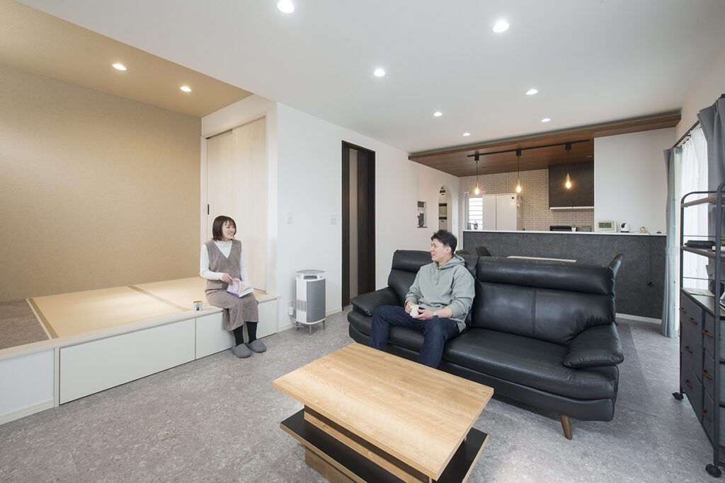 リビングの横にタタミコーナーをつくって、広々と見えますし、くつろいだりできて落ち着けるLDKになりました!