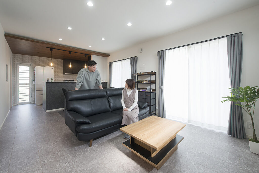 LDK側にカーポートがあるので、どちらの窓も掃き出しにして、明るい光が入る空間になりました!